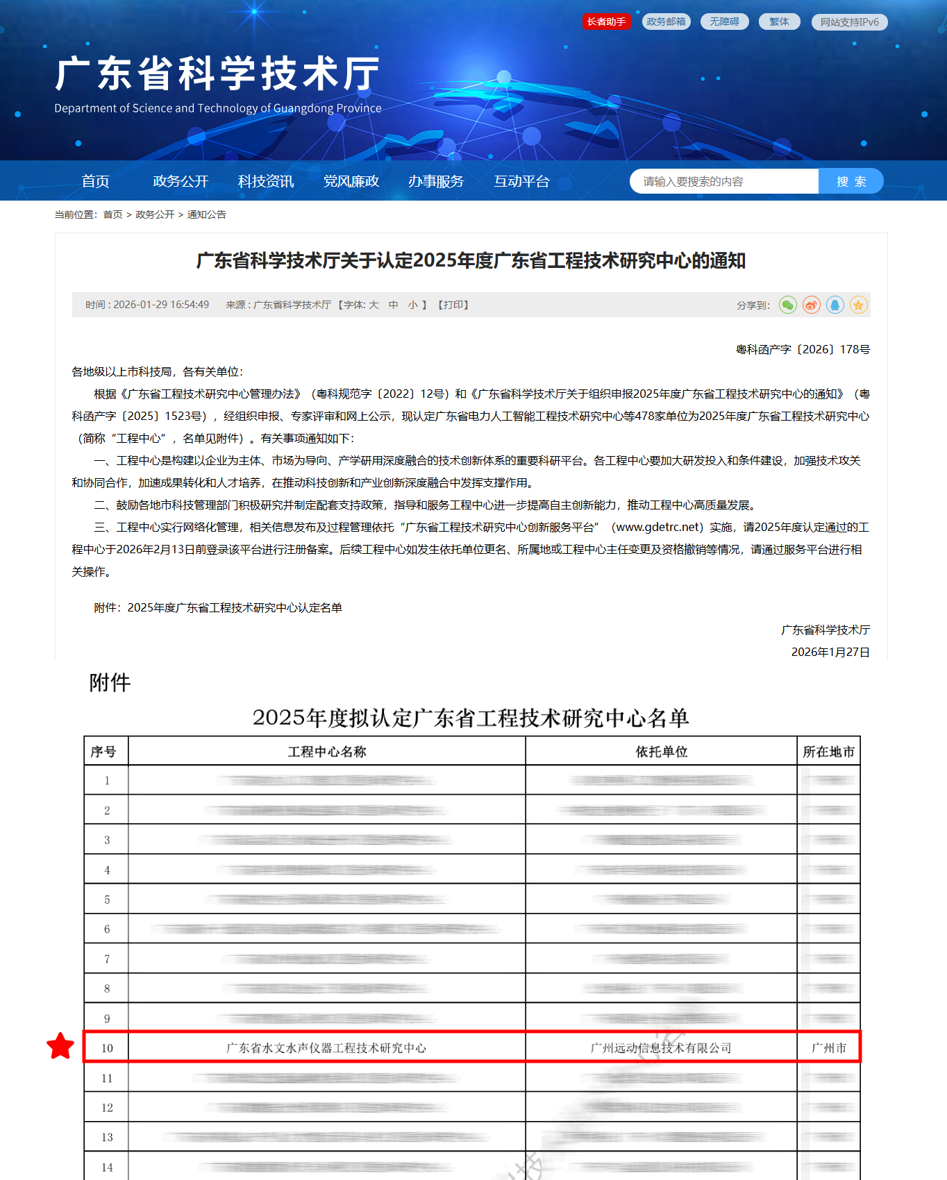 近日,根据广东省科学技术厅正式发文,广州远动信息技术有限公司被认定为广东省水文水声仪器工程技术研究中心(编号:2025A092)。这标志着我司水文感知核心装备领域的研发实力、创新能力与产业化基础获得了省级层面的权威认可,正式跻身省级科技创新平台行列。